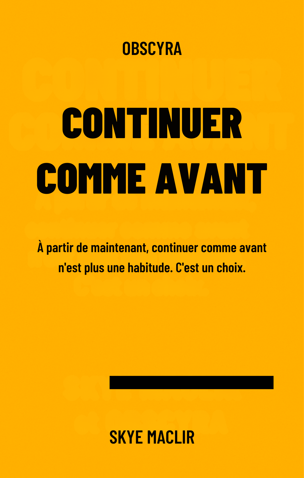 Continuer comme avant explore avec lucidité les mécanismes invisibles qui gouvernent nos vies quotidiennes sans que nous en ayons conscience. Skye MacLir décortique les structures ordinaires et omniprésentes qui façonnent nos pensées, nos décisions et nos comportements, révélant comment la passivité est produite et entretenue. Ce livre n’est ni un guide de rébellion, ni un appel à l’action : c’est un regard précis sur la réalité telle qu’elle se déploie.